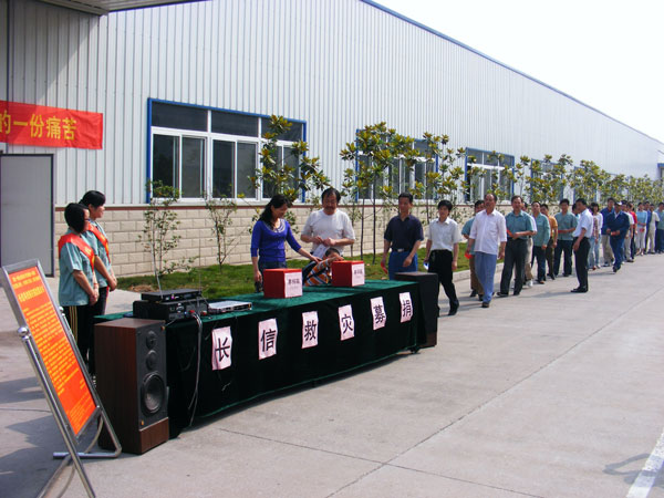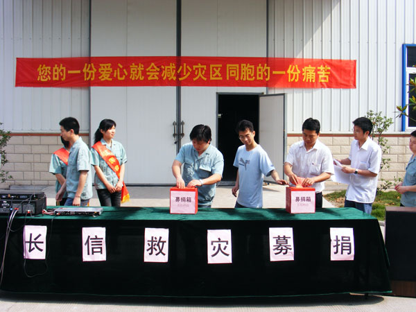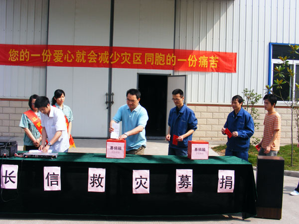 5月19日上午,在懸掛的“您的一份愛心就會減少災區同胞的一份痛苦”的大型條幅下,公司員工捐款活動正式舉行,大家排著長長的隊伍,把自己對災區人民的一份愛心和深切問候之情投入了捐款箱。
